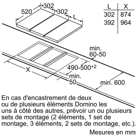 Profondeur de la niche d’encastrement (mm) : 490.
