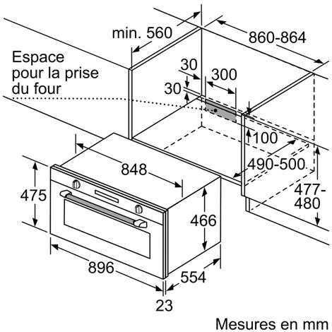 Hauteur minimum de la niche d’encastrement (mm) : 477.