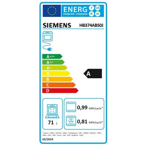 Four intégrable multifonction iQ300 Siemens HB374ABS0J. Gain de temps grâce au préchauffage. Préchauffage rapide : votre four atteint plus rapidement la température souhaitée.Le nettoyage pyrolyse : le système automatique pour un nettoyage sans effort.10 programmes automatiques pour un résultat de cuisson parfait.Air pulsé 3D : cuisson parfaite sur 3 niveaux.Une chaleur optimale pour une cuisson parfaite, même sur 3 niveauxPermet de cuire gâteaux, biscuits ou pizzas sur un, deux ou trois niveaux en même temps : la répartition innovante et homogène de la chaleur à l’intérieur du four garantit une cuisson toujours parfaite.Porte abattantePorte abattante pour une ouverture et une fermeture facilitées.Préchauffage rapide : pour atteindre plus vite la température souhaitéeLa fonction préchauffage rapide (en option) permet une montée en chaleur très rapide du four ? sans consommer pour autant plus d’énergie. Le four est par exemple préchauffé jusqu’à ce qu’il atteigne une température de 175 °C en 5 minutes environ (avec le mode de cuisson à air pulsé 3D).Nettoyage par pyrolyse : Laissez faire votre fourPar simple pression sur une touche, tous les résidus de cuisson sont carbonisés à haute température : vous n?avez plus qu?à essuyer les cendres avec un chiffon humide. Découvrez le plaisir de faire la cuisine sans vous soucier des conséquences.