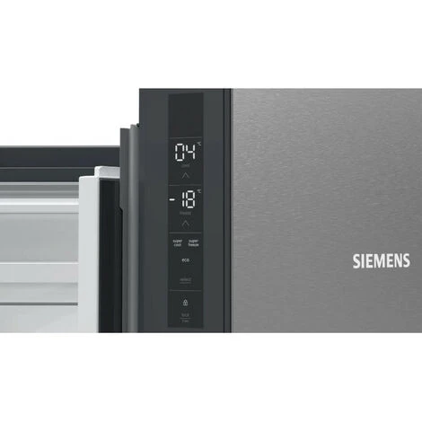 Réfrigérateur multi portes iQ300 Siemens KF96NVPEA avec système de conservation hyperFresh : des conditions de conservation parfaites pour vos viandes et poissons ansi que vos fruits et légumes. noFrost : la corvée du dégivrage, c’est terminé. hyperFresh : plus d’espace pour les fruits et légumes. Un compartiment plus froid pour le poisson et la viande. freshSense : des capteurs gardent une température stable pour garder vos aliments frais plus longtemps. Super congélation : congelez rapidement, même de grandes quantités d’aliments. Mode vacances : réduit la consommation de votre réfrigérateur lors de vos absences prolongées.