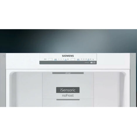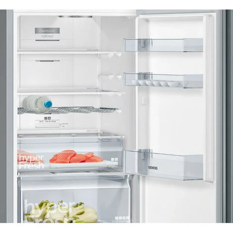 Réfrigérateur combiné iQ300 Siemens KG36NVIEC avec compartiment hyperFresh et noFrost. Conservez vos aliments de manière optimale et finie la corvée du dégivrage. noFrost : la corvée du dégivrage, c’est terminé. Moins de nettoyage avec antiFingerprint. Spot central et colonne latérale de LED pour éclairer chaque coin de votre réfrigérateur. freshSense : la garantie de préserver plus longtemps la fraîcheur des aliments.