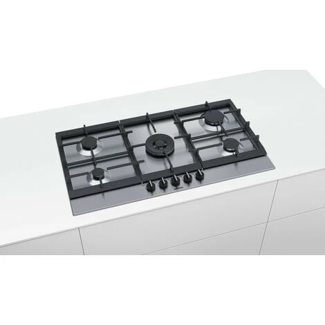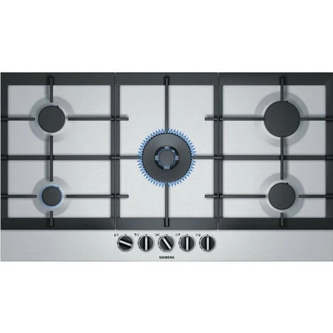 Table inox gaz iQ500 Siemes EC9A5RB90 avec la technologie stepFlame pour un contrôle précis de la flamme en 9 niveaux de puissance. Technologie StepFlame : contrôle précis de la chaleur en 9 niveaux de puissance. Wok double couronnes avec une puissance de 5 kW. Idéal pour la cuisson d’une large variété de plats même en grande quantité. Haute qualité des matériaux et de fabrication – supports en fonte. Usage confortable grâce à la grande qualité des boutons en épée. Table Siemens avec un design unique en acier inoxydable.Puissance :5 brûleurs.Avant gauche : Brûleur économique 1 kW.Arrière gauche : Brûleur normal 1.75 kW.Au centre : Wok 5 kW.Arrière droit : Brûleur grande puissance 3 kW.Avant droit : Brûleur normal 1.75 kW.Confort/Sécurité :Technologie stepFlame : 9 niveaux de puissance réglables avec précision.Allumage électrique une main.Sécurité gaz par thermocouple.Nettoyage facilité.Supports fonte.
